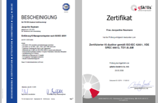 Im November 2025 nahm Jacqueline Naumann an einer ISO 42001-Grundlagenschulung der TÜV SÜD Akademie teil und im März besuchte Sie an 3 Wochenenden die Schulung zum KI-Auditor von qSkills. Am… weiterlesen →